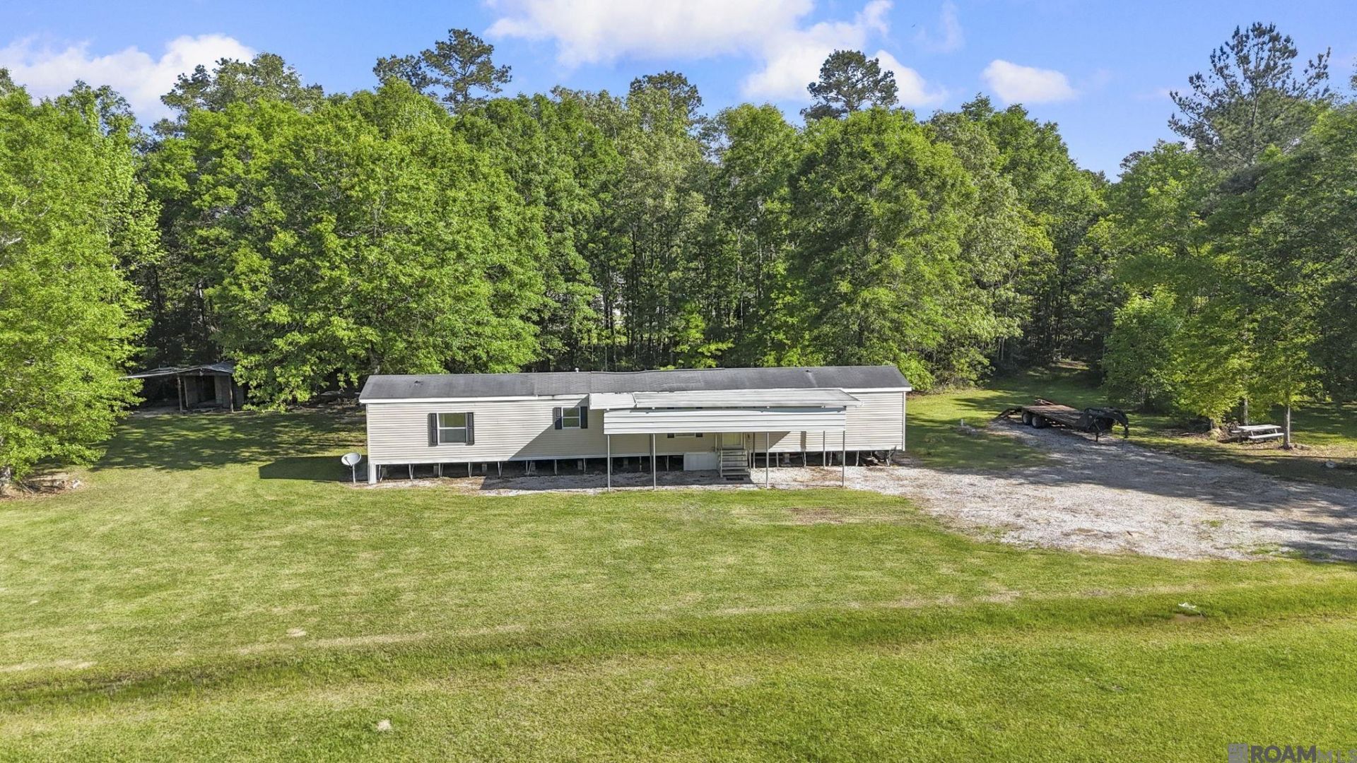 Opportunity meets versatility on this 15.7-acre property in Livingston, located less than 1 mile from the Satsuma exit off I-12! Tucked away on a quiet dead-end road, this property offers privacy, peaceful surroundings, and excellent neighbors. The land is approximately ¾ cleared and ¼ wooded, backing up to Colyell Creek and featuring a pond stocked with fish. Enjoy daily wildlife sightings including deer, turkey, and ducks, a deer stand, and trails along the property boundary. The property includes a 2010 16x76 Wind Zone 3 mobile home with front and rear porches, minimal updates needed, and ready for immediate occupancy. All appliances remain, including refrigerator, dishwasher, washer/dryer, and microwave. Additional improvements include central HVAC (2021), a storage building with double lean-to, and a gated driveway. Infrastructure is already in place for expansion or investment potential, with two additional homesites featuring pads, limestone driveways, active power poles, and 2020 mechanical sewer systems. A pump shed houses a water well with a new bladderless tank and pump (2024). Property corners have been surveyed and clearly marked. Did not flood in 2016. Whether you're looking for a private homestead, recreational retreat, or income-producing opportunity, this property offers endless possibilities. Seller is willing to sell with or without the mobile home.