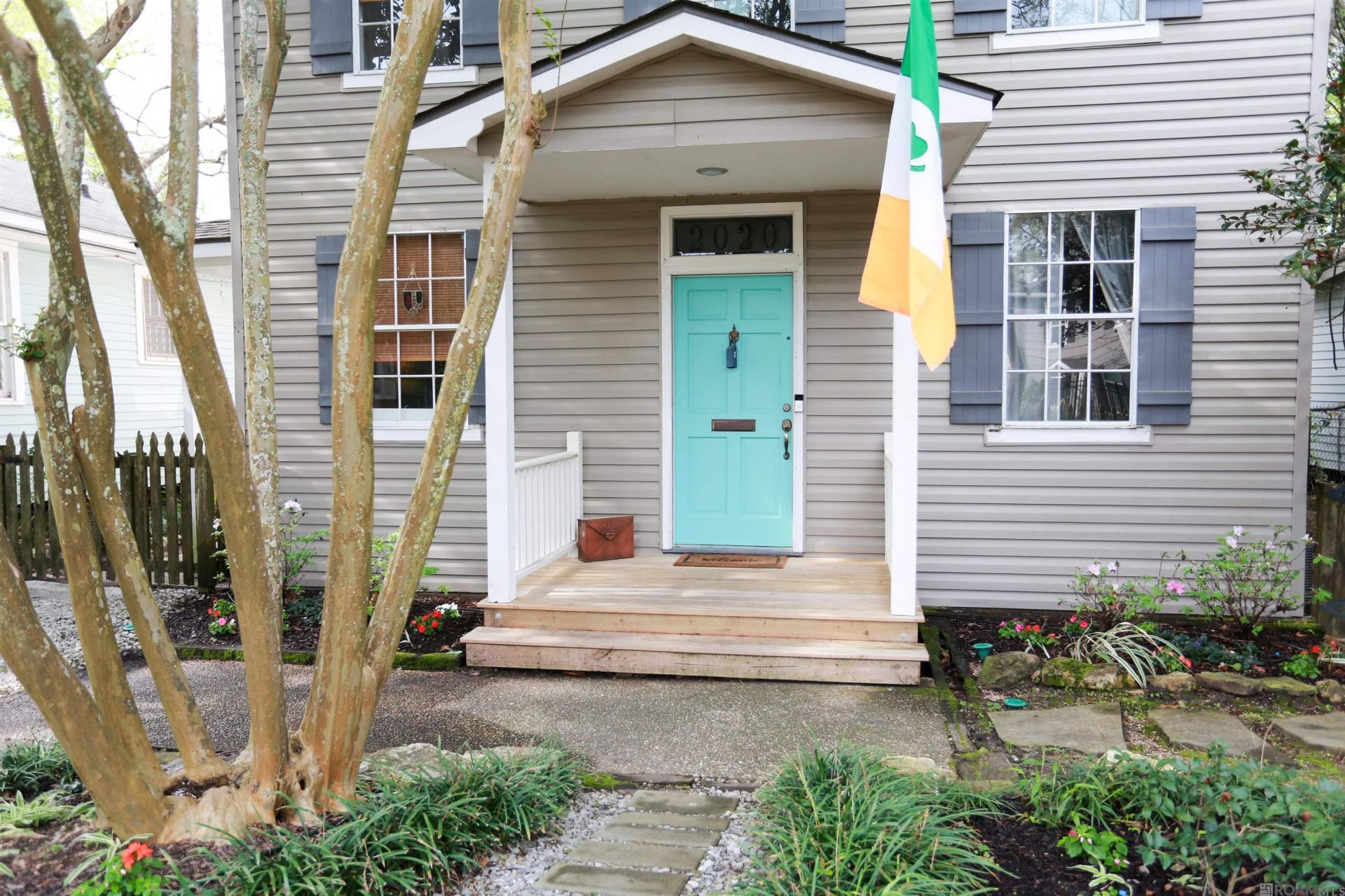 Nestled in the charming Poet's Corner, this inviting two-story home is ready to welcome you. A newly constructed front porch overlooks a mature Camellia tree, offering the perfect spot to relax and unwind. Inside, updated lighting highlights the open-concept living and dining areas, complemented by original wood floors that run throughout the main level. The kitchen features beautifully tiled countertops, a distinctive copper hood vent, and a farmhouse sink?blending character with functionality. Upstairs, the spacious primary bedroom offers room for a cozy sitting area or office nook, along with two generous walk-in closets. The updated bathroom showcases stylish hexagon tile flooring, quartz countertops, and elegant gold accents. Downstairs, a versatile bedroom?ideal as a guest room or home office?includes a convenient half bath and is framed by beautifully stained French doors. The raised back porch, with a recently replaced roof, overlooks an expansive backyard that feels like a peaceful private retreat. Perfectly situated, this cozy home is within walking distance to City Park, the LSU Lakes, and the shops and restaurants of Perkins Overpass?and sits right along the St. Patrick's Day parade route. Don't miss this opportunity to live in Poet's Corner!