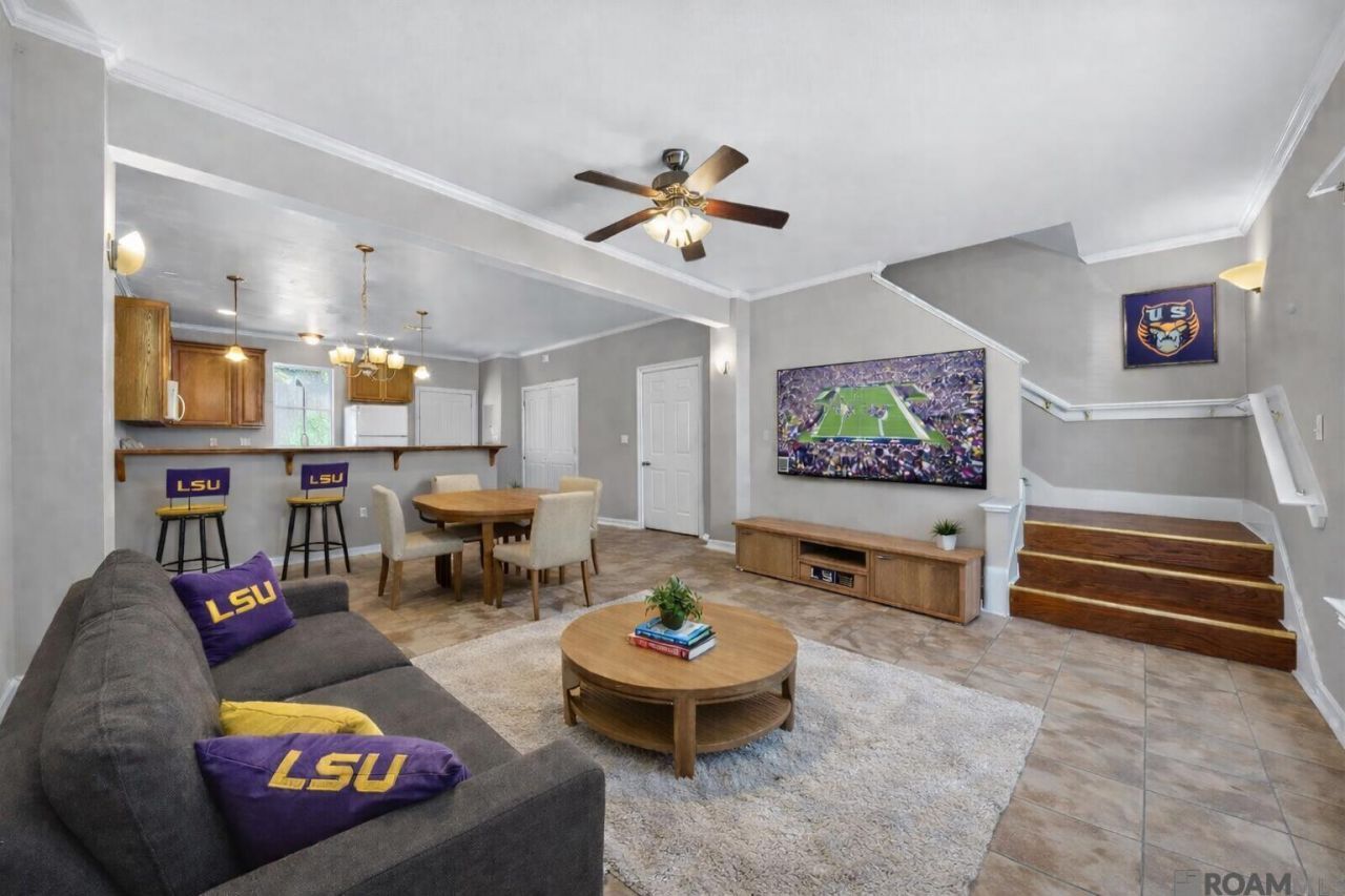 Buy now before the peak LSU market buying season! Gated and professionally managed townhome-style community located off of Brightside Lane, two miles from LSU. Located on the LSU bus route and in close proximity to countless restaurants and shops on Lee Dr. This corner unit is low maintenance and offers an open and spacious floor plan. Downstairs features 9' ceilings, ceramic tile floors and countertops, a half bath, in-unit laundry, and access to the private rear patio. New washer and dryer remain. Refrigerator also remains. Upstairs has 2 bedrooms, each with a private bathroom and new carpet. The Ac is only 3.5 years old. All exterior maintenance and insurance are included in the $1900/year HOA fee and there are 2 assigned parking spaces. This is truly a sound investment for someone wanting to take advantage of the 2026 Fall Semester.
