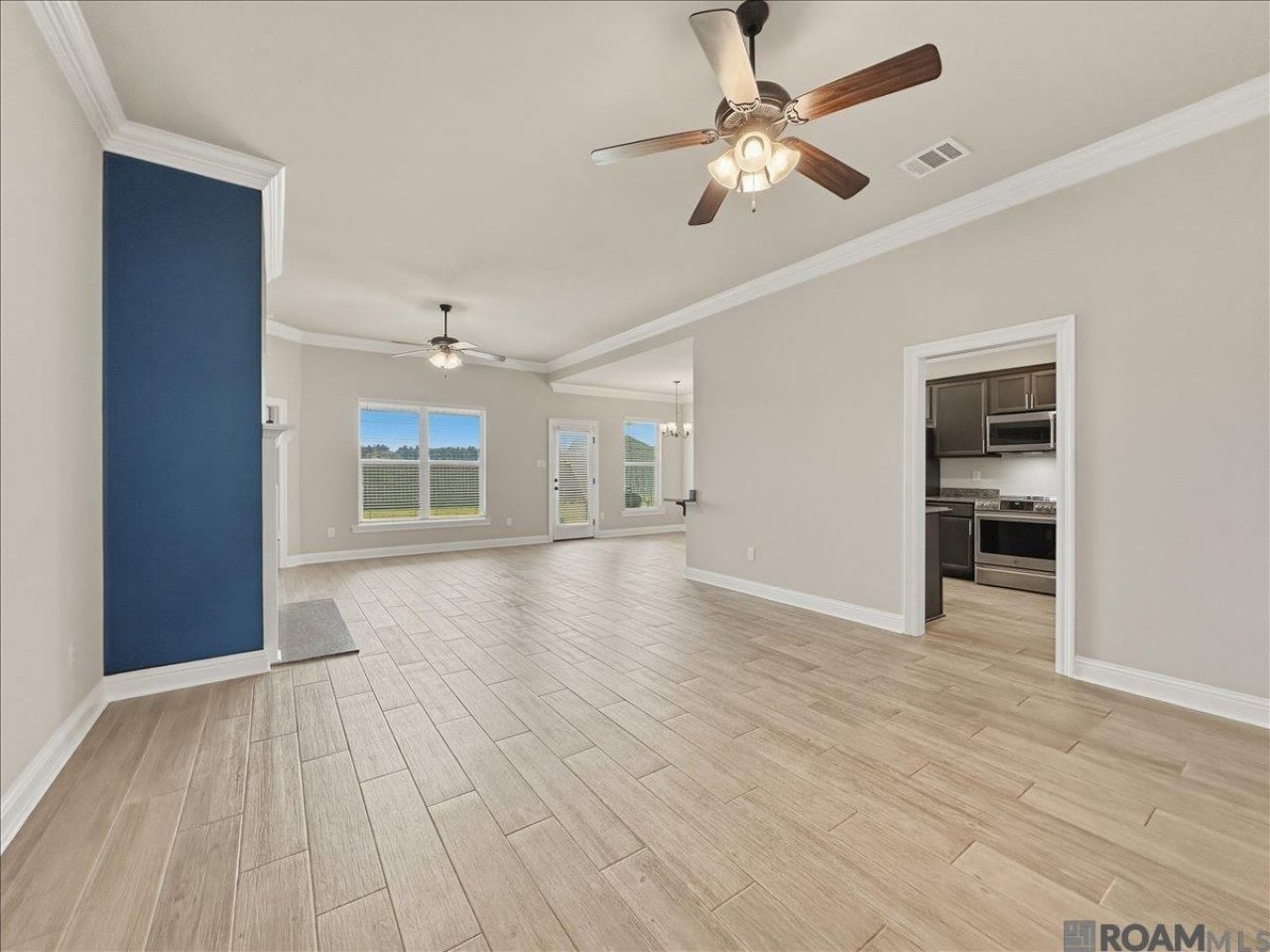 Welcome home to this beautifully maintained, move in ready Macon IV A floor plan nestled in the desirable Nickens Lake Subdivision just off 4-H Club Road. Built less than six years ago, this 3 bedroom, 2 bath home offers standout upgrades that make it one of the best values in the neighborhood. Inside, you'll love the wood-look ceramic flooring throughout (no carpet anywhere), complemented by crown molding, insulated interior walls, and a decorative fireplace with a granite profile that adds warmth and style to the living space. The kitchen features granite countertops, birch cabinetry, undermount sink, a pantry, and a breakfast bar that overlooks the living area - perfect for everyday living and entertaining. Upgraded GE Café appliances elevate the space, including a refrigerator that remains with the home and an induction cooktop for modern cooking convenience. The spacious primary suite is your private retreat, complete with a tray ceiling, designer accent wall, and a spa like bathroom offering a soaking tub, separate shower, dual vanities, and two walk-in closets. Energy efficiency was thoughtfully designed into this home with Low E tilt-in windows, a tankless gas water heater, radiant barrier roof decking, and a programmable wifi thermostat, helping to reduce utility costs. Outside, enjoy a fully fenced backyard with privacy wood fencing - ideal for relaxing, pets, or entertaining. This home has been wired for a security system with 4 cameras & a doorbell camera, and additional peace of mind comes with a post-tension slab, 30 year architectural shingles, no flood insurance requirement, and available 100% financing. Homes like this don't last long. Schedule your private showing today and see for yourself why this Denham Springs home checks every box. [Photos are edited by a professional photo editor for marketing purposes. Some photos may have Ai Generated Furniture in the homes for visualization purposes]